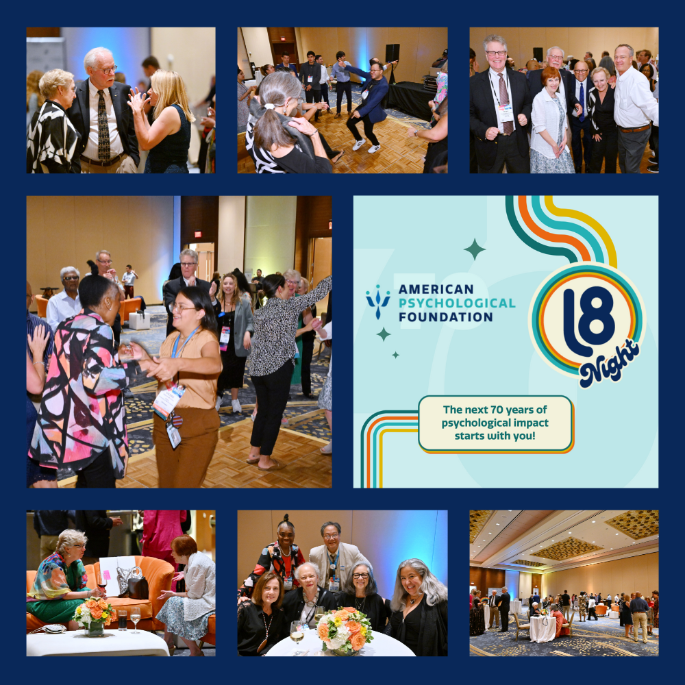 Thanks for a Gr8 Night! We had a blast with longtime colleagues and new connections as we channelled the 1970s to celebrate 70 years of helping psychologists solve the world’s problems. The next 70 years of psychological impact starts with you!